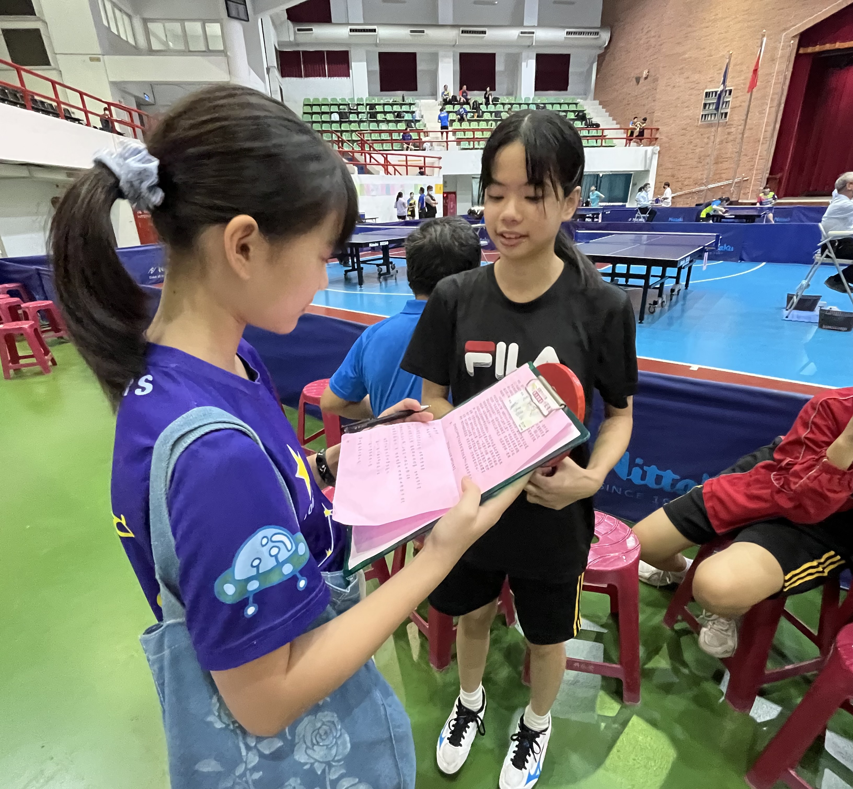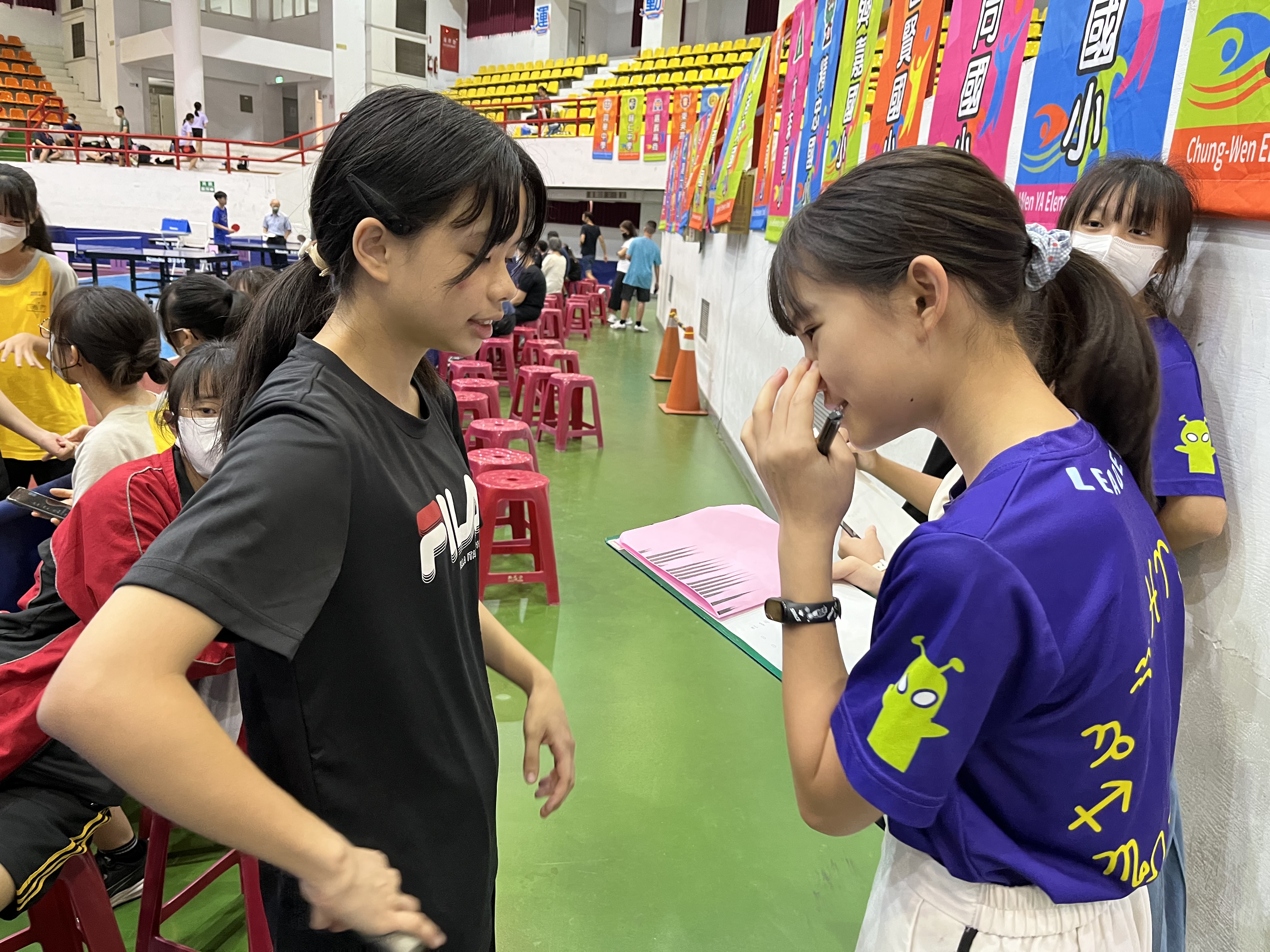 選手的信心-減壓式~ 嘉義市中小聯合運動會如火如荼展開,摩拳擦掌準備中,各個都懷抱著滿滿信心。 我們也訪問到現在就讀於嘉義國中的說黃怡昕,面對比賽前會不會緊張的提問,她卻認為讓自己抱著可能會輸的心情,反而會比較放鬆。除了面對南興的選手讓她感到強大壓力以外,其他的選手她是都有信心迎接挑戰的。黃怡昕特別想感謝在場周邊為她加油的隊友們,同時也期待自己的反手拍球技能透過這次比賽中有所進步。 《蘭潭國小小記者/花郁淇報導 112.10.28》